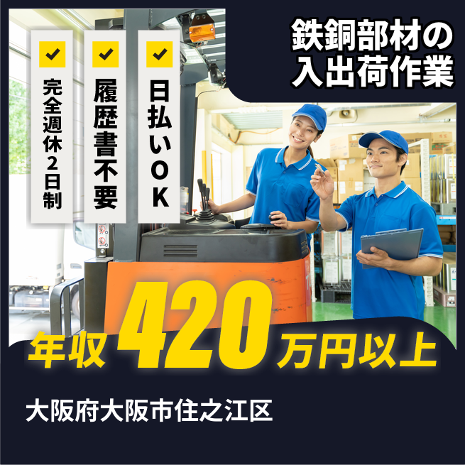 給与詳細 年収例 4,212,000円 月収例 351,000円 勤務地 大阪府大阪市住之江区 仕事内容 20トンクレーンを操作可能な方大歓迎