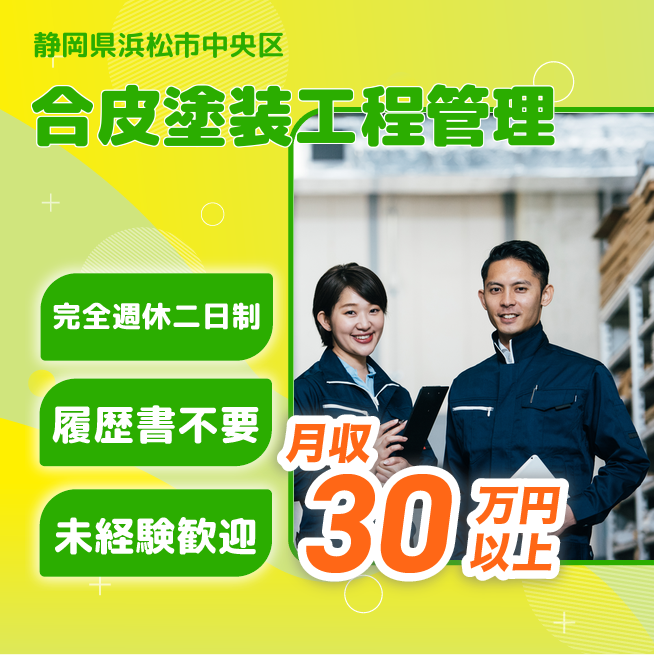 給与詳細 月収例 312,500円 日給例 15,625円 勤務地 静岡県浜松市中央区 仕事内容 DC工程に配属。