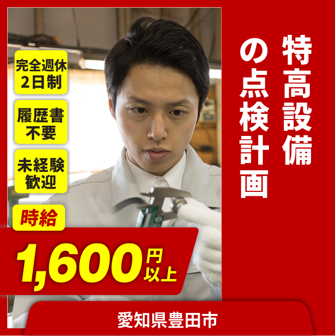 給与詳細 月収例 272,000円 時給例 1,600円 勤務地 愛知県豊田市 仕事内容 自動車部品製造工場の特高受電設備の安定的な運用を目的とした、日常点検及び定期的な整備・改修計画の立案と実行