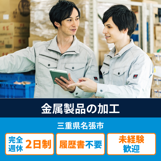 給与詳細 月収例 210,000円 日給例 10,500円 勤務地 三重県名張市 仕事内容 ≪未経験からスタート可能!金属製品の加工のオシゴト♪≫