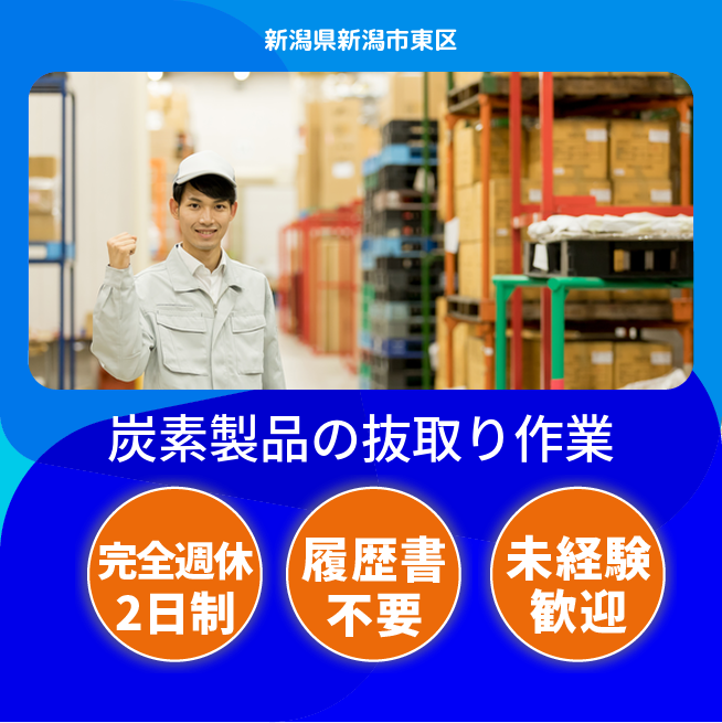 安心の週休二日【炭素製品の抜取り作業】