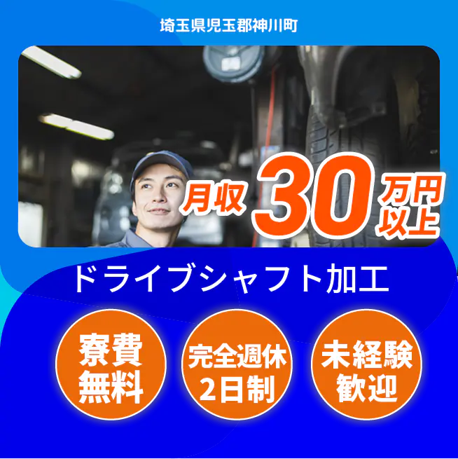 ※実際と異なるケースもございます。 交通費 支給あり 応募の流れ 本ページ内<応募する>ボタンより、必要項目をご入力の上、ご応募ください。 勤務地 【勤務地】埼玉県児玉郡神川町元原 勤務時間 【勤務地】①08:00~17:00 休憩60分
