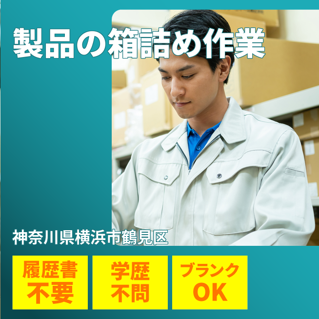 給与詳細 月収例 220,800円 日給例 11,040円 勤務地 神奈川県横浜市鶴見区 仕事内容 製品の箱詰め作業
