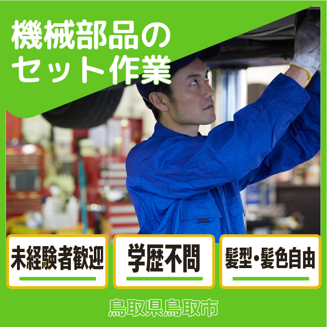 給与詳細 月収例 234,407円 時給例 1,156円 勤務地 鳥取県鳥取市 仕事内容 機械へ部品をセットしてスタートを押し、製品が出来上がったら取り出す作業・製品の巻き付け作業・外観検査業務