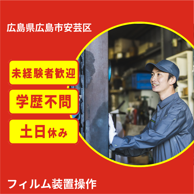 時給例:1387円 交通費 支給なし 応募の流れ 本ページ内<応募する>ボタンより、必要項目をご入力の上、ご応募ください。 勤務地 【勤務地】広島県広島市安芸区船越南1丁目 勤務時間 【勤務地】【日勤】