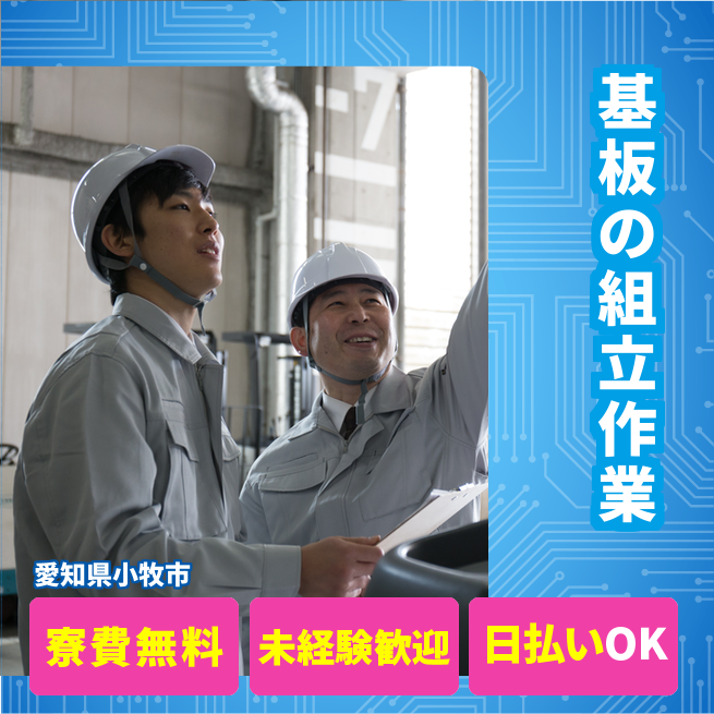 給与詳細 月収例 280,000円 時給例 1,213円 勤務地 愛知県小牧市 仕事内容 【手持ちサイズの基板組立】