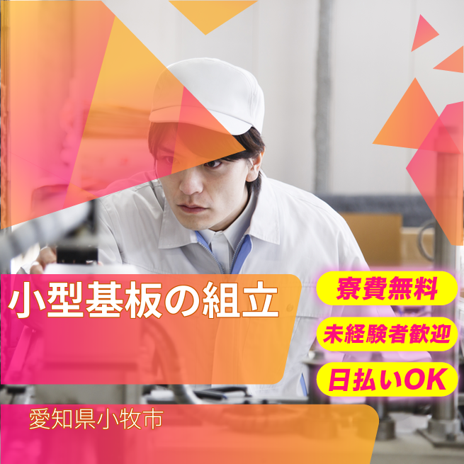 給与詳細 月収例 280,000円 時給例 1,213円 勤務地 愛知県小牧市 仕事内容 【業務内容】手持ちサイズの基板に電子部品を組み立てる作業