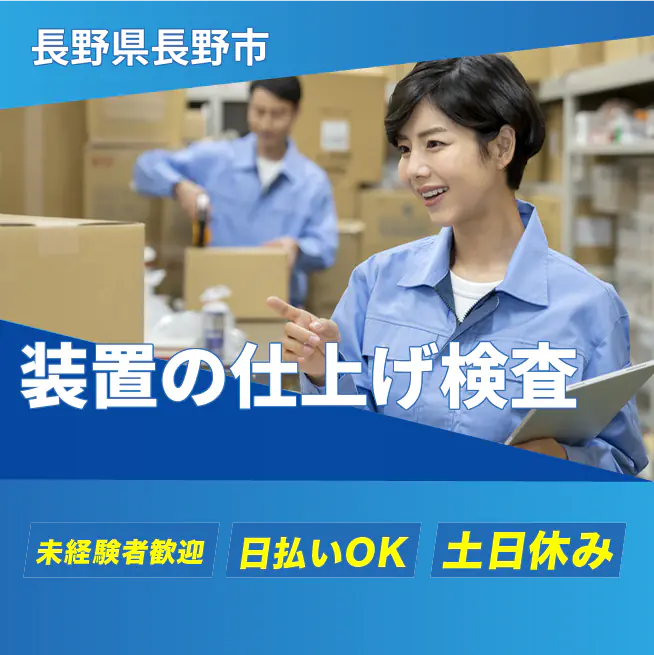 給与詳細 月収例 190,000円 時給例 1,180円 勤務地 長野県長野市 仕事内容 【業務内容】