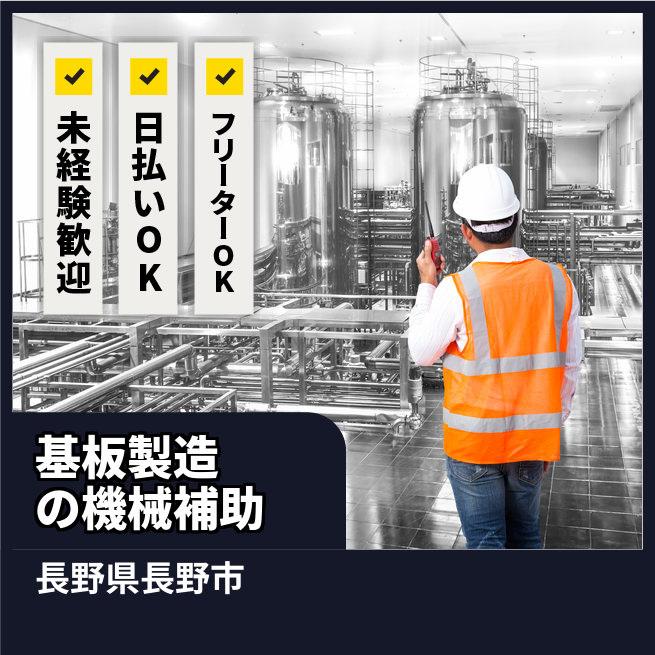 給与詳細 月収例 280,000円 日給例 10,480円 勤務地 長野県長野市 仕事内容 【プリント基板を作る機械補助・目視チェック】