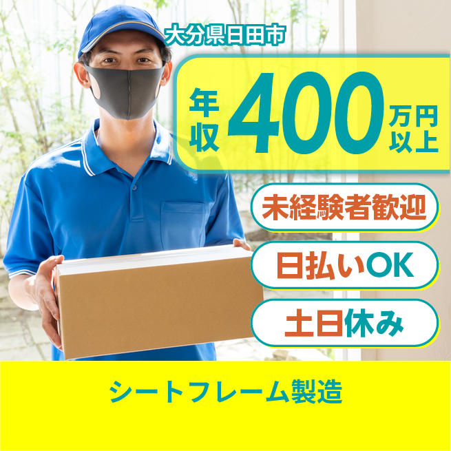 給与詳細 年収例 4,080,000円 月収例 340,000円 勤務地 大分県日田市 仕事内容 【自動車用シートフレームの製造】