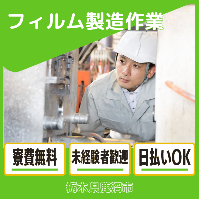 クリーンルーム内で半導体に使うフィルム製造、材料の攪拌、マシンオペレーター、・製品の裁断(マシンOP)