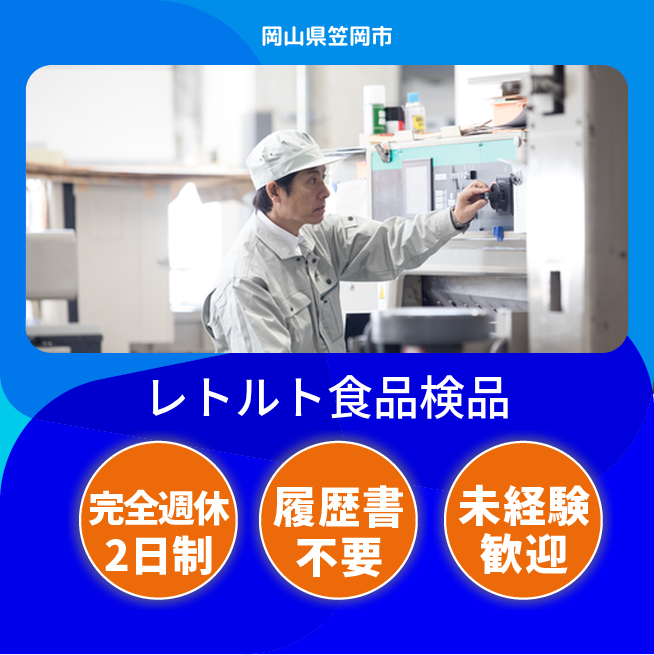 給与詳細 月収例 234,000円 時給例 1,200円 勤務地 岡山県笠岡市 仕事内容 機械操作・軽作業