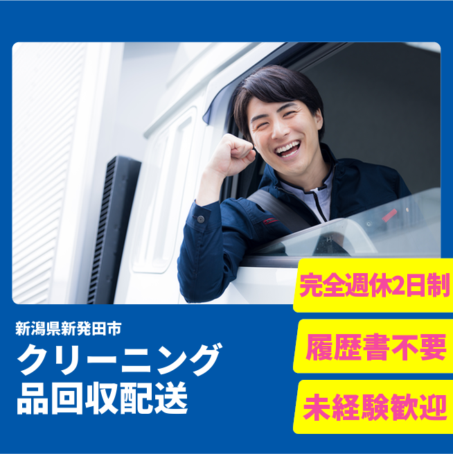 給与詳細 月収例 213,360円 日給例 10,668円 勤務地 新潟県新発田市 仕事内容 自社店舗および取次店舗を巡回し、クリーニング品の回収・配送を行っていただくお仕事です。