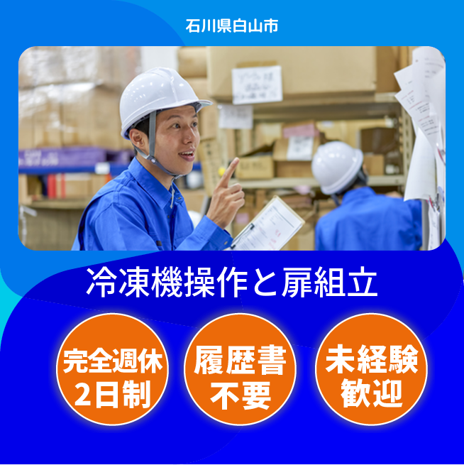 給与詳細 月収例 260,000円 日給例 13,000円 勤務地 石川県白山市 仕事内容 【業務内容】