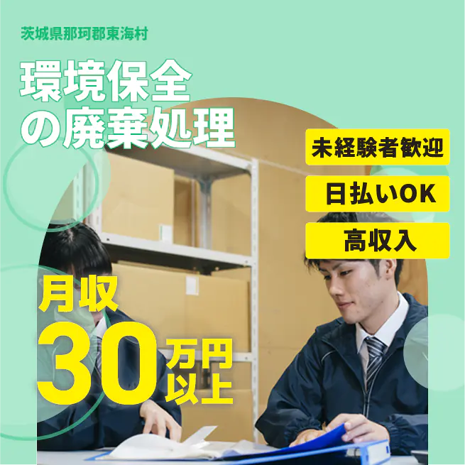給与詳細 月収例 330,000円 時給例 2,000円 勤務地 茨城県那珂郡東海村 仕事内容 【業務内容】