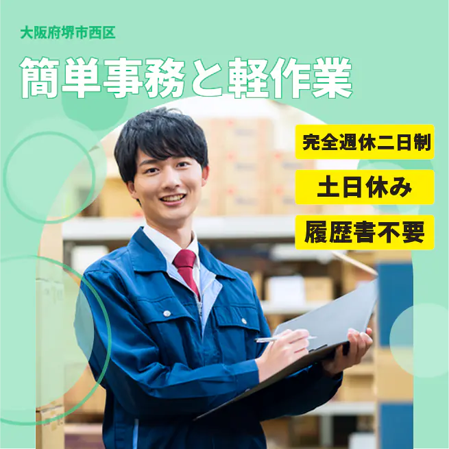 給与詳細 月収例 200,800円 日給例 10,040円 勤務地 大阪府堺市西区 仕事内容 【業務内容】