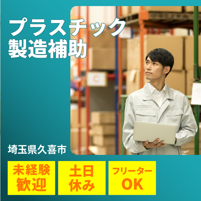 22.2~23.9万円 交通費 支給あり 応募の流れ 本ページ内<応募する>ボタンより、必要項目をご入力の上、ご応募ください。 勤務地 【勤務地】埼玉県久喜市- 勤務時間 【勤務地】日勤