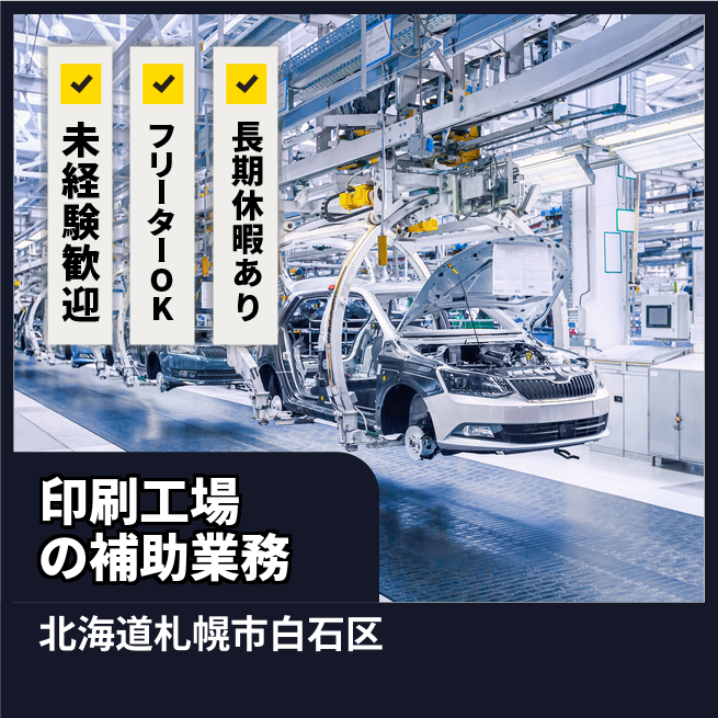 給与詳細 月収例 220,000円 日給例 11,000円 勤務地 北海道札幌市白石区 仕事内容 【業務内容】