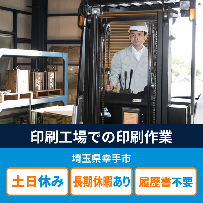 給与詳細 月収例 245,000円 日給例 12,250円 勤務地 埼玉県幸手市 仕事内容 ウィルオブ・ワークの正社員としての大手印刷工場で勤務いただきます。