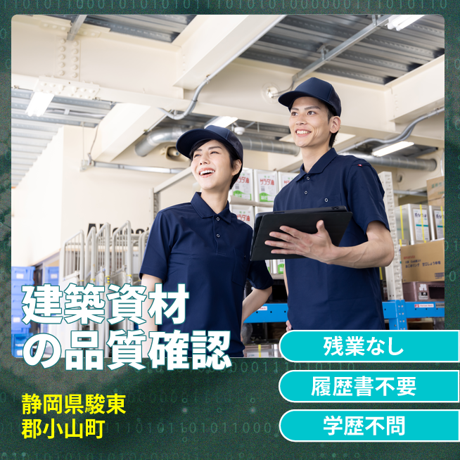 時給例:1380円 応募の流れ 本ページ内<応募する>ボタンより、必要項目をご入力の上、ご応募ください。 勤務地 【勤務地】静岡県駿東郡小山町- 勤務時間 【勤務地】8:30~17:00 福利厚生 残業手当 公開日 2025年01月01日 部屋タイプ 単身者向けの1Rやカップル・家族向け2Kのルーム、ペットOKなど幅広いニーズに合わせてご用意しております! 家具・備品 テレビ・冷蔵庫・エアコンなどの家電を完備!すぐに新生活が始められます!※寮による その他 カップル・家族寮:相談可