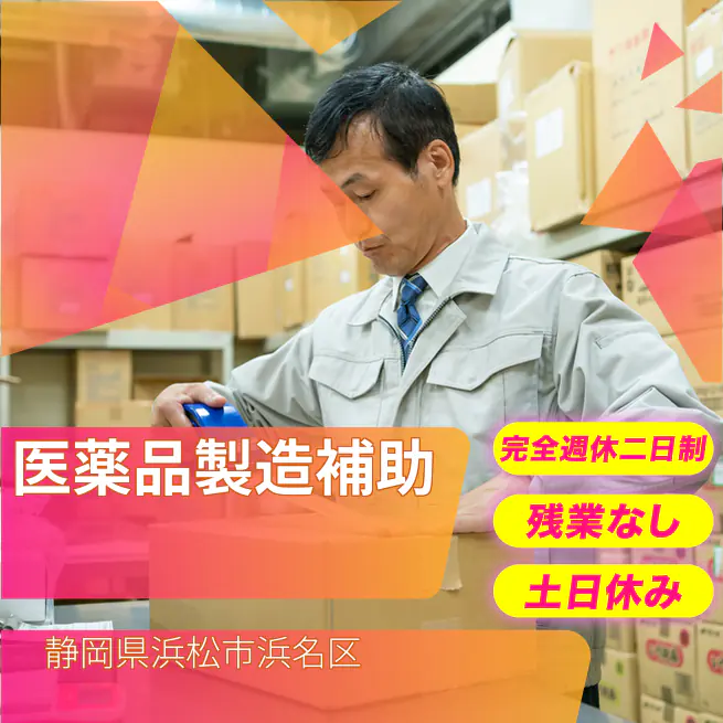 時給例:1580円 応募の流れ 本ページ内<応募する>ボタンより、必要項目をご入力の上、ご応募ください。 勤務地 【勤務地】静岡県浜松市浜名区- 勤務時間 【勤務地】7:00~15:30