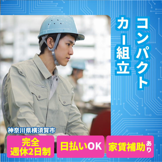 給与詳細 月収例 257,000円 日給例 11,000円 勤務地 神奈川県横須賀市 仕事内容 【業務内容】コンパクトカーの内装と外装部品の組み立て作業を行います。