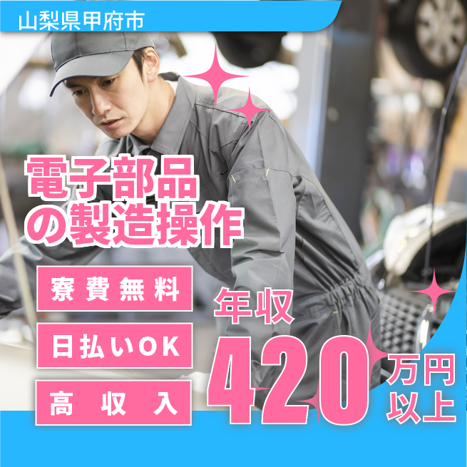 給与詳細 年収例 4,200,000円 月収例 350,000円 勤務地 山梨県甲府市 仕事内容 【電子部品の製造オペレーター】