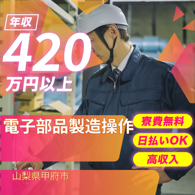 ※就労期間中適用(規定あり) 交通費 支給あり 応募の流れ 本ページ内<応募する>ボタンより、必要項目をご入力の上、ご応募ください。 勤務地 【勤務地】山梨県甲府市大津町 勤務時間 【勤務地】8:30~18:10(休憩70分)