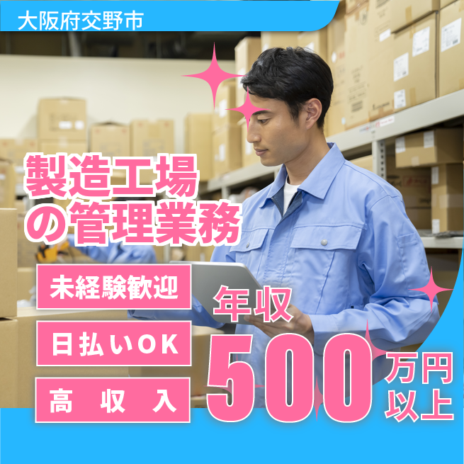 給与詳細 年収例 5,040,000円 月収例 420,000円 勤務地 大阪府交野市 仕事内容 【業務内容】