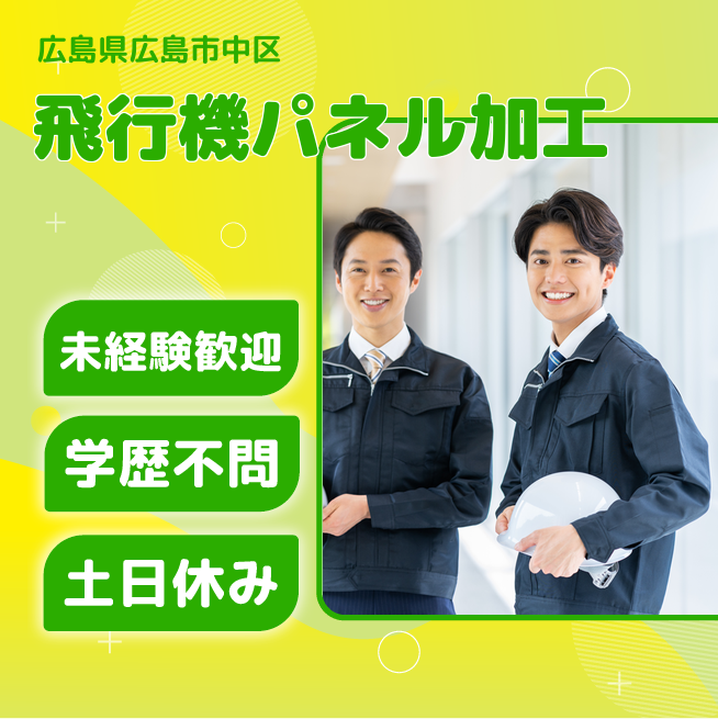 就業場所:無/就業範囲:無 飛行機の胴体に使用するパネルを作るお仕事です。 主に金属パネルへ穴をあけて部品を取り付けるお仕事です。 1、3m幅の金属パネルへ穴をあける 2、パネルの穴に合わせて部品を取り付ける(リベット打ち)。 ※数名のチームで行動し、リーダーの指示に従い作業を行います。