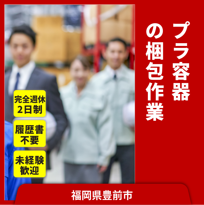 安心の週休2日【プラ容器の梱包作業】