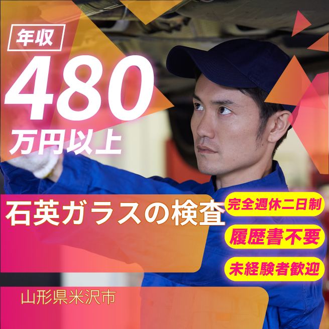 給与詳細 年収例 4,800,000円 月収例 400,000円 勤務地 山形県米沢市 仕事内容 主に製品の外観検査作業です。洗浄液を使ったり洗浄機の操作作業もあります。