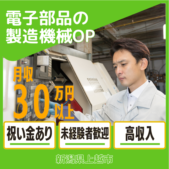 給与詳細 月収例 307,510円 日給例 11,788円 勤務地 新潟県上越市 仕事内容 電子部品の製造機械オペレーター/4勤2休の2交替