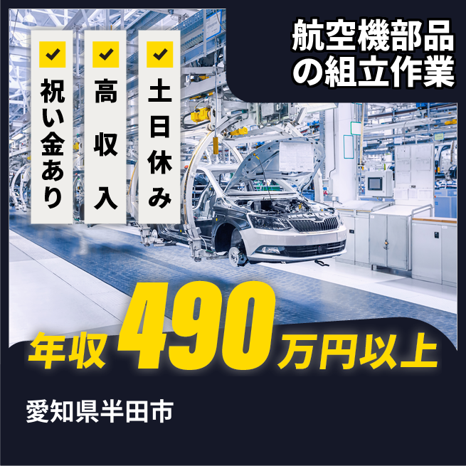 給与詳細 年収例 4,912,200円 月収例 409,350円 勤務地 愛知県半田市 仕事内容 航空機製造の組立業務/2交替勤務