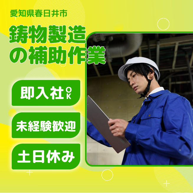 給与詳細 月収例 257,999円 日給例 10,679円 勤務地 愛知県春日井市 仕事内容 鋳物・アルミ製品の製造補助/日勤のみ