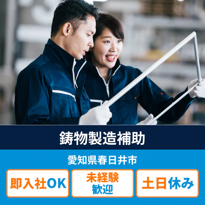 →ほか各種手当 交通費 支給あり 応募の流れ 本ページ内<応募する>ボタンより、必要項目をご入力の上、ご応募ください。 勤務地 【勤務地】愛知県春日井市- 勤務時間 【勤務地】8:00~17:00