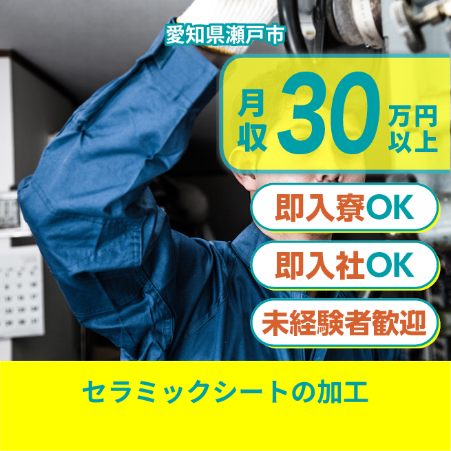 給与詳細 月収例 302,250円 日給例 12,000円 勤務地 愛知県瀬戸市 仕事内容 セラミックシートの加工/夜勤