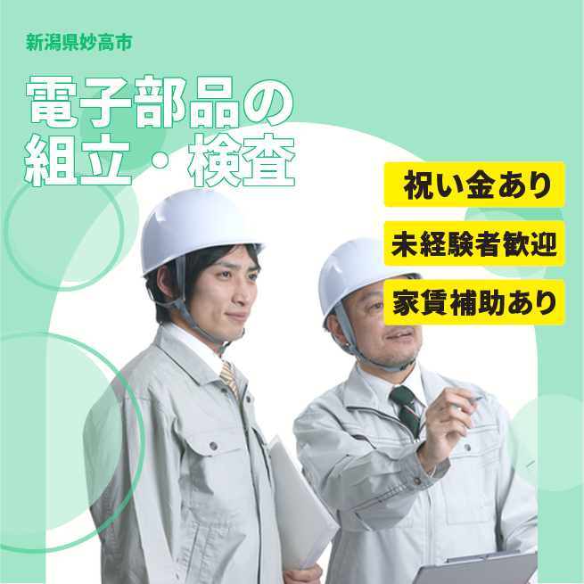 給与詳細 月収例 234,650円 日給例 13,650円 勤務地 新潟県妙高市 仕事内容 電子部品の組立・検査/3勤3休の2交替勤務