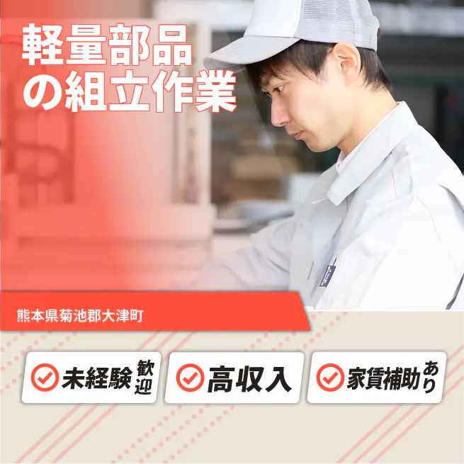 給与詳細 月収例 297,850円 日給例 10,850円 勤務地 熊本県菊池郡大津町 仕事内容 【業務内容】