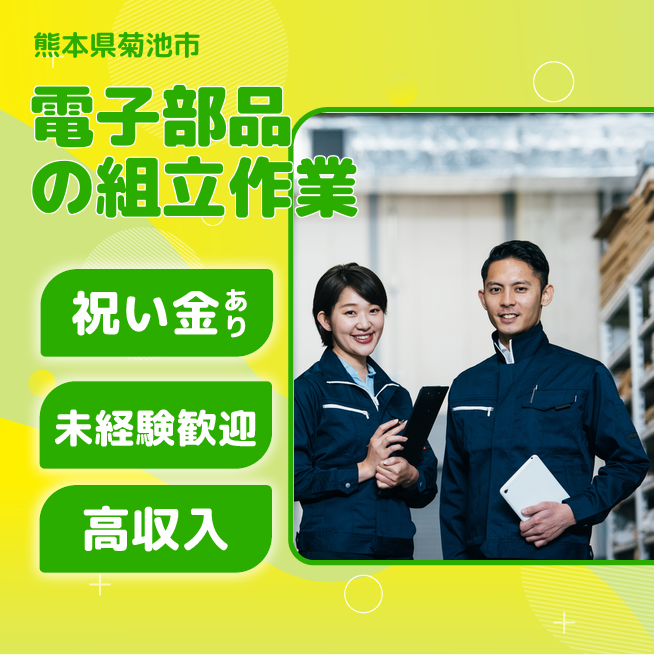 給与詳細 月収例 297,850円 日給例 10,850円 勤務地 熊本県菊池市 仕事内容 電子部品の組立/日勤