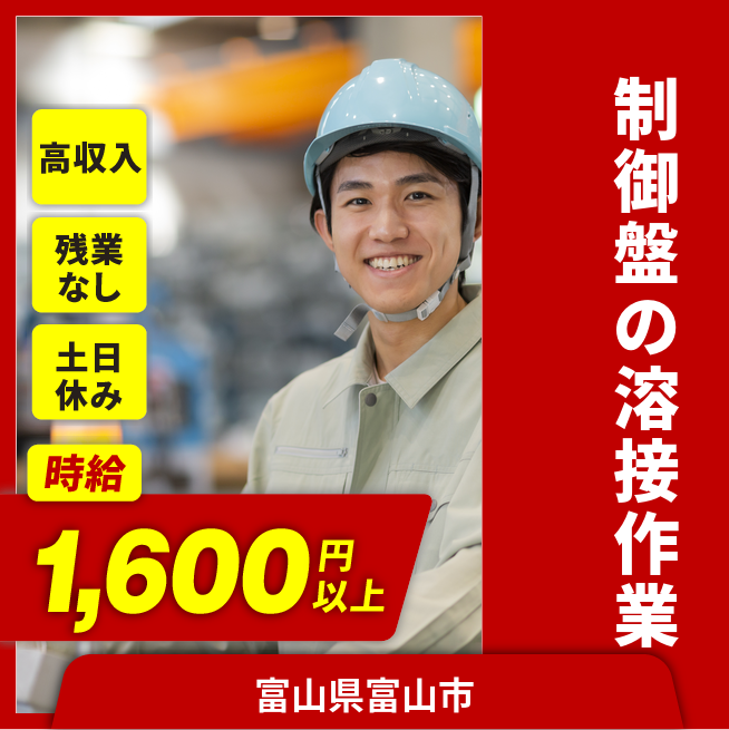 給与詳細 月収例 256,000円 時給例 1,600円 勤務地 富山県富山市 仕事内容 【制御盤の溶接】