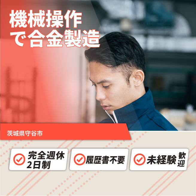 安心の週休制度【機械操作で合金製造】