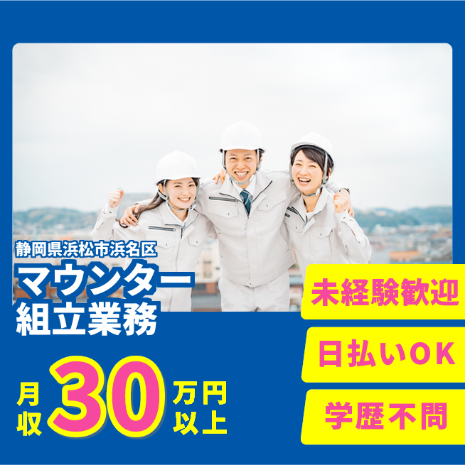 給与詳細 月収例 300,000円 日給例 11,200円 勤務地 静岡県浜松市浜名区 仕事内容 【業務内容】