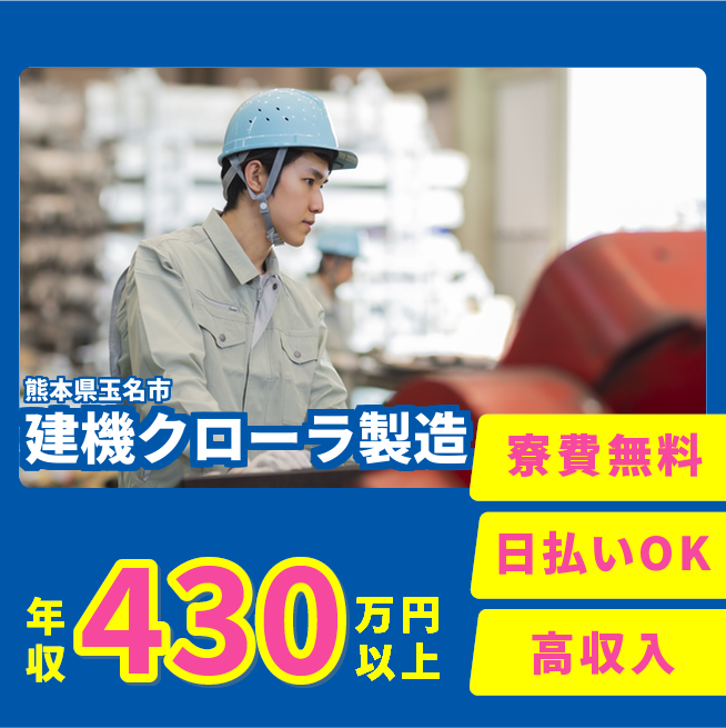 ◆日払い・仮払いOK(アプリでカンタン申請!) 交通費 支給あり 応募の流れ 本ページ内<応募する>ボタンより、必要項目をご入力の上、ご応募ください。 勤務地 【勤務地】熊本県玉名市河崎 勤務時間 【勤務地】8:15~16:35(休憩60分)