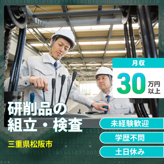 研削機の操作と製品の組立・検査・梱包を行う業務