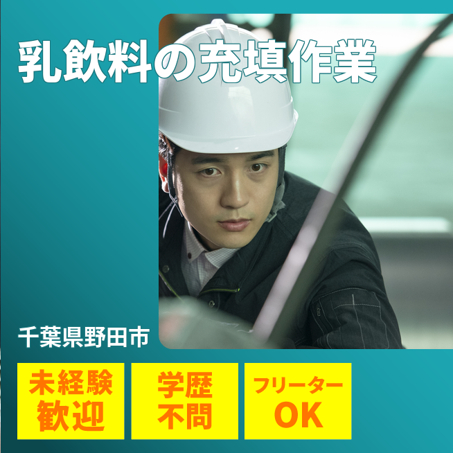 給与詳細 月収例 224,000円 日給例 11,200円 勤務地 千葉県野田市 仕事内容 牛乳・乳飲料の充填に関する業務(オペレーター・資材供給・包装等)。