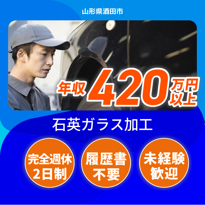 給与詳細 年収例 4,200,000円 月収例 350,000円 勤務地 山形県酒田市 仕事内容 石英ガラスの原料材(リング材※大きさ40㎝・厚み30㎝程)を機械にセットし、カット作業(機械が)