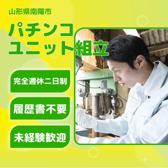 給与詳細 月収例 150,000円 時給例 1,050円 勤務地 山形県南陽市 仕事内容 加工前の準備、ラベル張り、ユニットの組み立て。ピンセットを使用した細かい作業あり。電動ドライバーはなし。