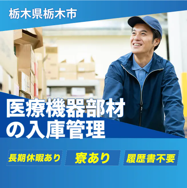 ドイツ発祥、長い歴史を持つ世界的な総合医療機器メーカー日本法人、栃木工場の倉庫内での部材入庫管理のお仕事です。