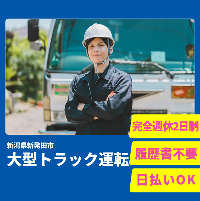 給与詳細 月収例 263,250円 日給例 10,800円 勤務地 新潟県新発田市 仕事内容 トラックドライバー。大型トラックを県内の配送先まで運転します。積み込み、下ろしはしません。